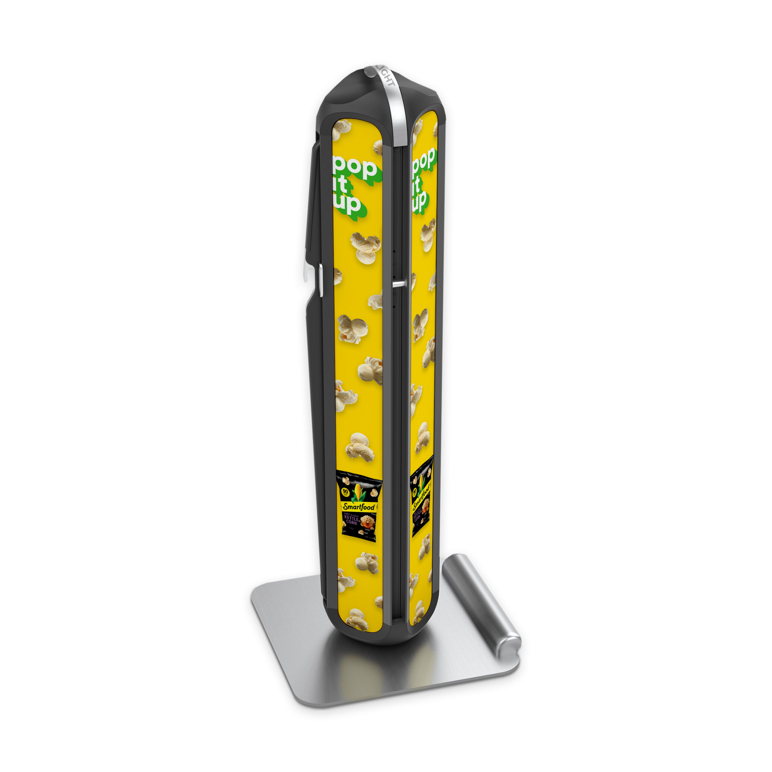 With its custom-designed handle and sturdy wheels, the Spotlight Influencer can be effortlessly rolled to the desired location and deployed instantly. The unit can then be moved and set up in new locations throughout an event or venue to capitalize on high-traffic areas.