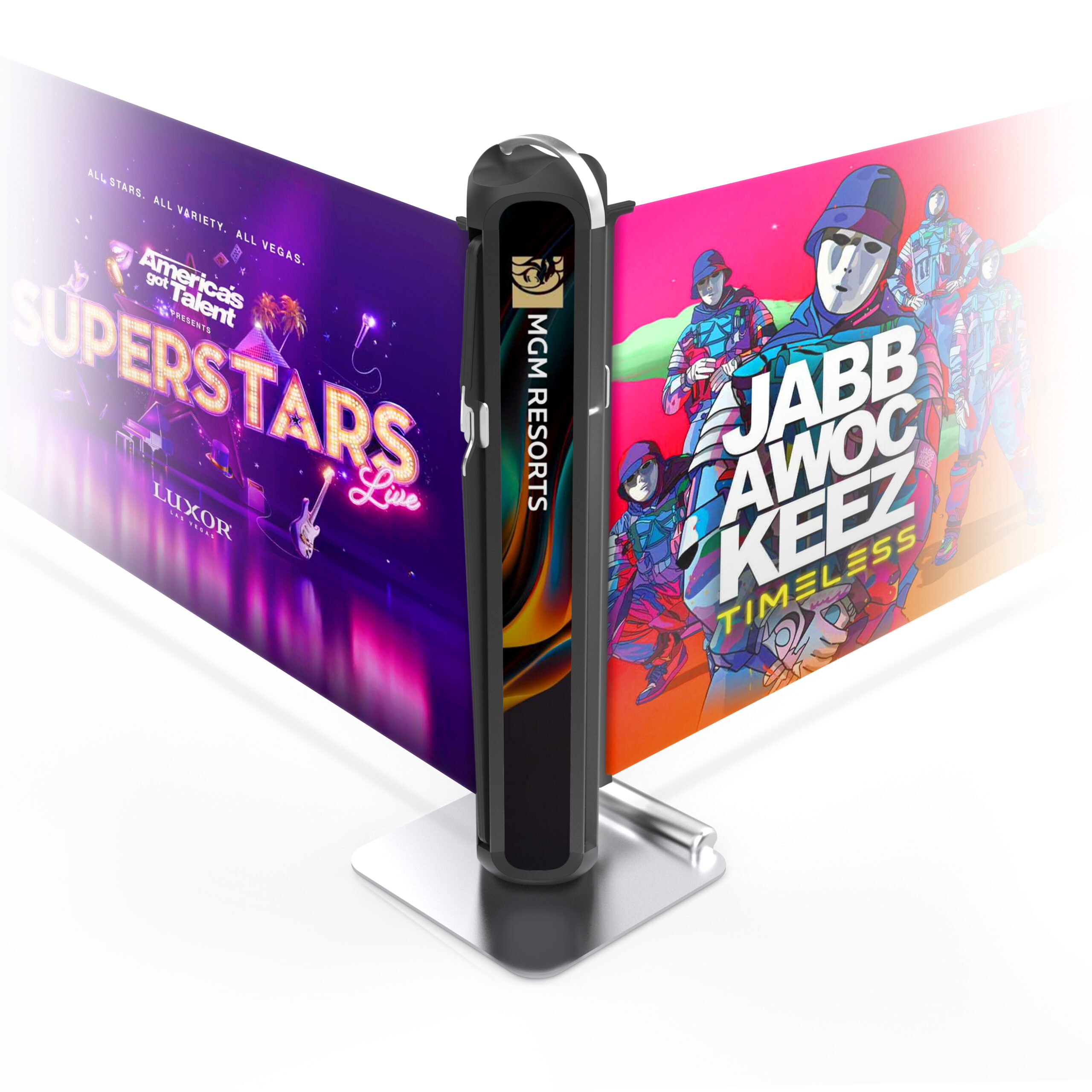 With its unique technology, Influencer banners seamlessly connect from barrier to barrier to create a straight line, L, T, or X configurations. Its unique hooking system connects to the attaching unit without leaving a gap for full coverage and a peerless aesthetic.